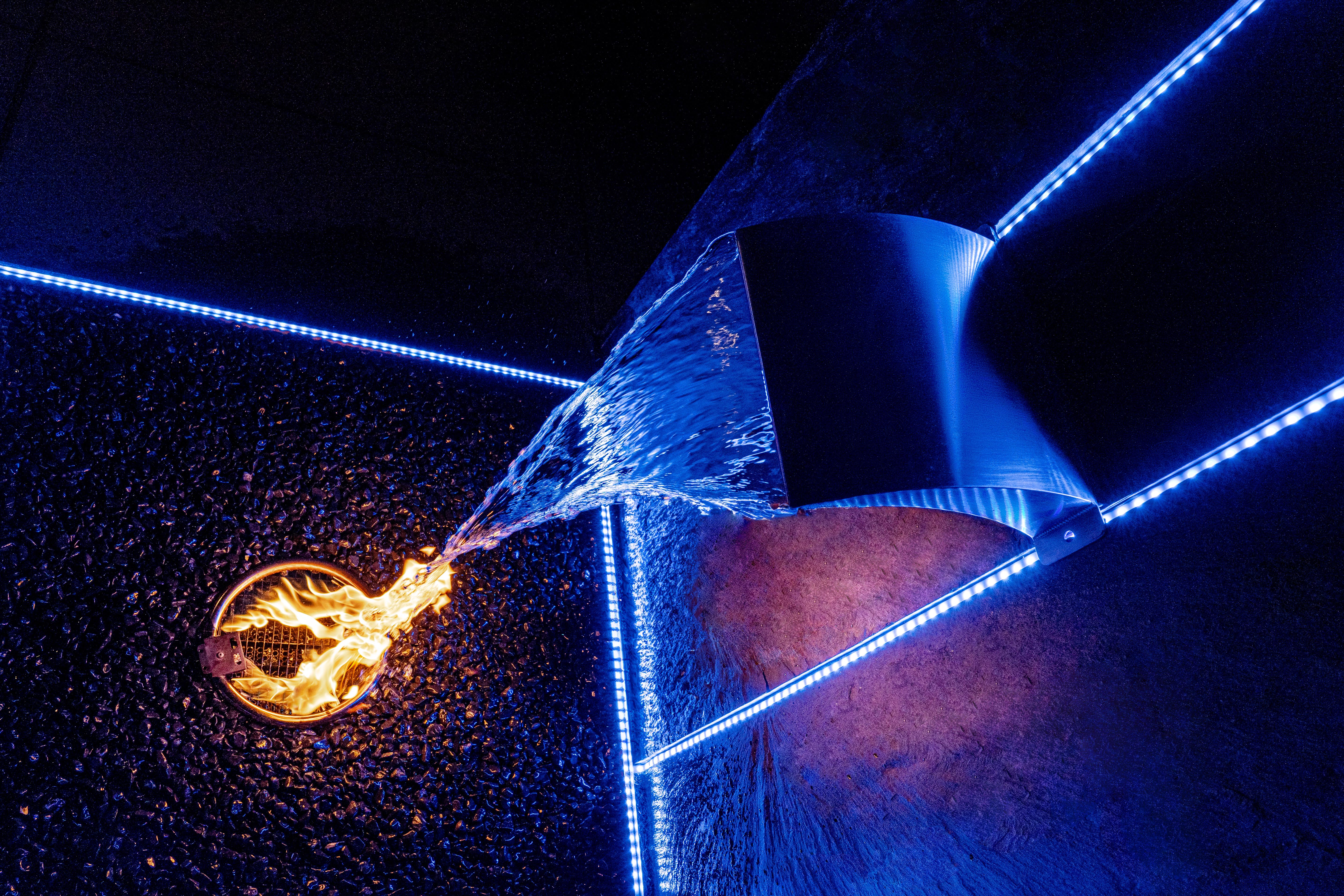 Wir fertigen maßgeschneiderte Wasserspiele und Brunnen, die ihre Elemente zu einem wahrhaftigen Highlight in Ihrem Garten vereinen. Der Anblick ist magisch, wenn das Wasser aus dem Naturstein heraus direkt in die Flammen fließt. Selbstverständlich lassen sich auch unsere Wasserspiele und Brunnen per App steuern.